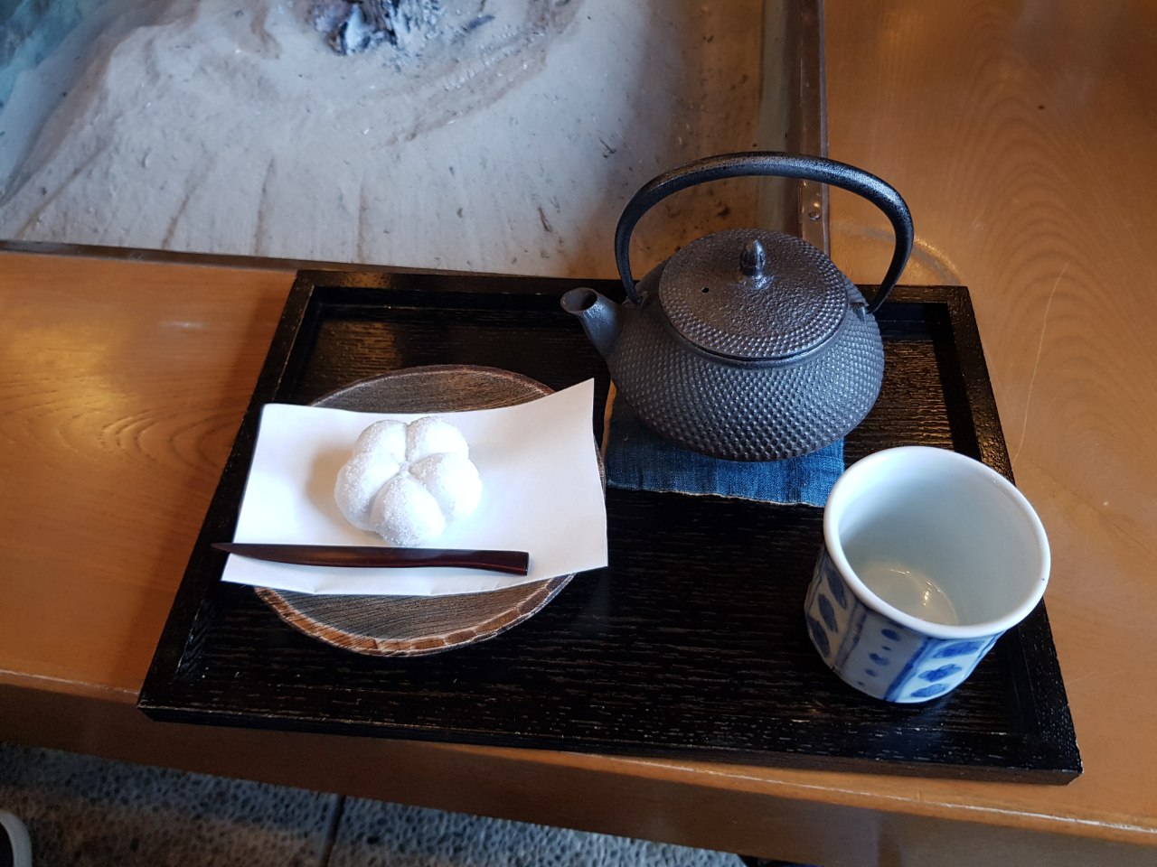 Sip on tea and traditional snacks around a hearth at Hazuchio Chaya