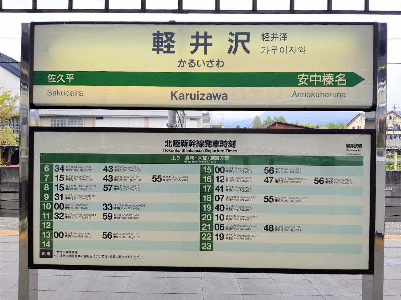 Visitors might be interested to know that the platform is also named after the Usui Pass, a historical railway pass that used to connect from Karuizawa Station to Yokokawa Station (横川駅 Yokokawa-eki) in Gunma Prefecture. The pass has since been closed after the Nagano Shinkansen (present-day Hokuriku Shinkansen) was built.