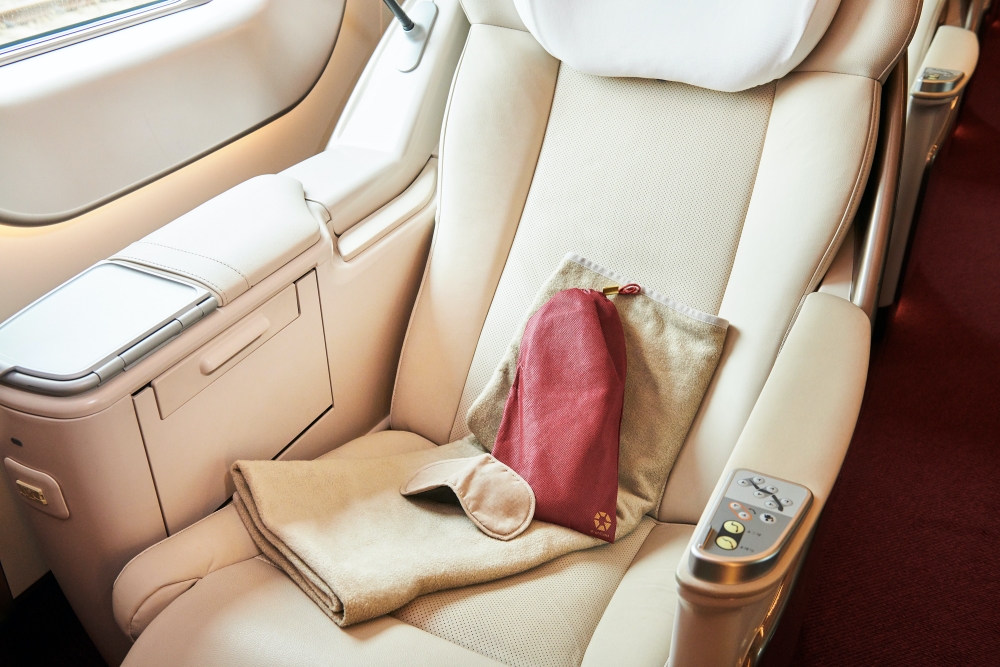 “Gran” is a French word that means “large”, and Gran Class seats offer plenty of space, a high level of comfort, with ergonomic and well-balanced support for passengers. They feature electric reclining for the backrest, seat, and leg rest, and come with a suite of features like plush headrests, reading lights, power outlets, dining tables, cocktail trays, privacy partitions, and even a call button to call the attendant.