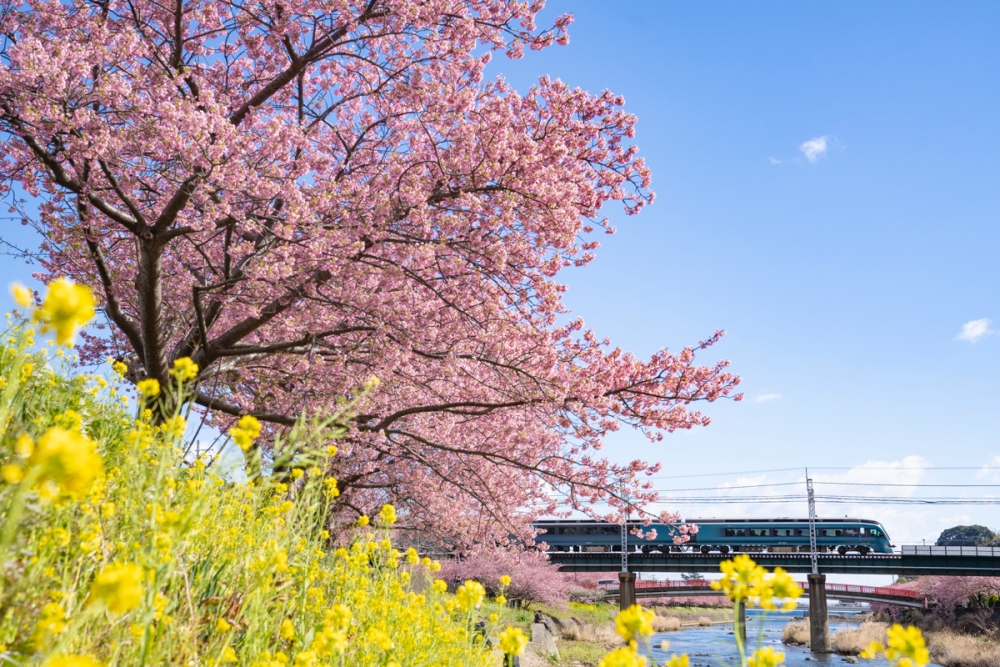 Often referred to as a resort train, the SAPHIR ODORIKO was a deluxe train built to replace the older Super View Odoriko, and brings passengers from Tokyo to the Izu Peninsula in 2.5 hours, passing by dazzling views of the sea.