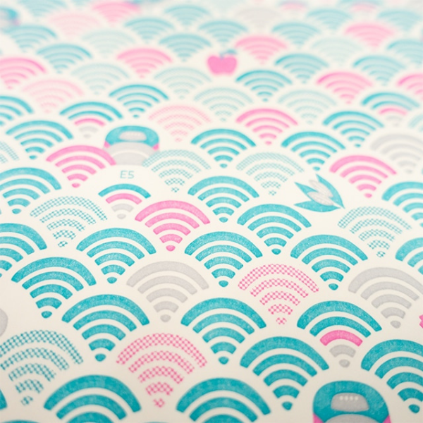 The classic Seigaiha (blue ocean wave) pattern symbolizes a wish for peaceful and harmonious living.