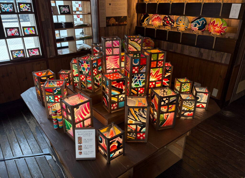 Handmade Craft Experience Workshop IRODORI is located on Nakamachi Komise Street(中町こみせ通り) in Kuroishi(黒石), which is known as one of the “100 Best Roads in Japan” and features traditional buildings from the Edo period. This workshop offers experiences in making and selling lanterns using Neputa paintings that were actually used in the Kuroishi Neputa Festival. They receive Neputa paintings from neighbourhood associations and other groups to create fans and lanterns.