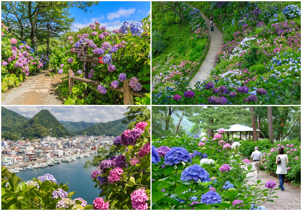 While kawazuzakura herald the beginning of spring, hydrangeas (紫陽花 ajisai) signal the end of spring and the beginning of summer. During Shimoda’s annual hydrangea festival in June, visitors can marvel at beautiful hydrangeas in a variety of vivid colours at Shimoda Park (下田公園), where around 3 million hydrangeas bloom. Shimoda Park is a 25-minute walk from Izukyū-Shimoda Station.