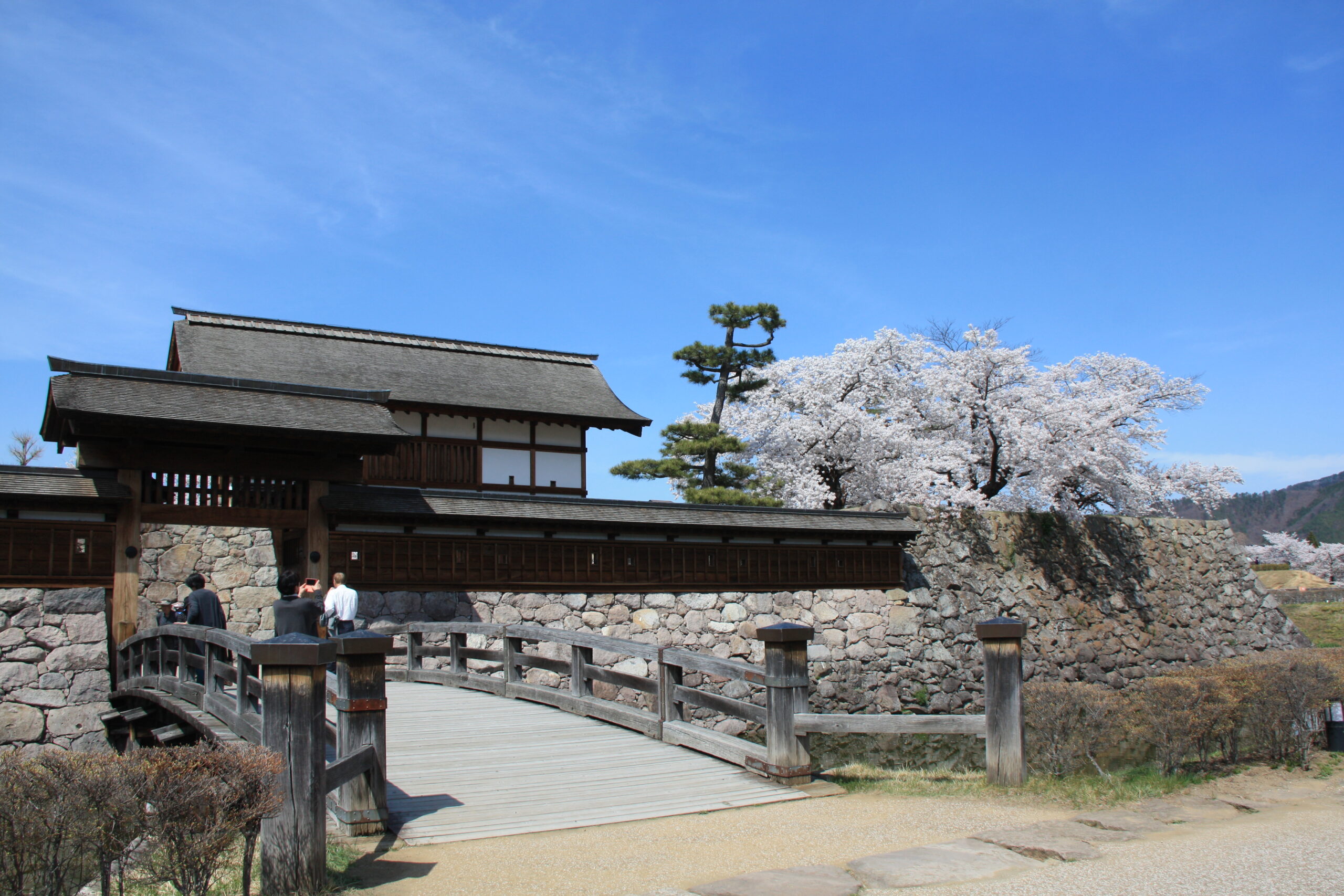 Matsushiro Castle was owned by the Sanada Clan (真田家 Sanada-ke) who used to rule over Matsushiro-han. “Han” is an old way of calling municipalities used in the Edo era. The Sanada Clan was also famous for their family symbol, the Rokumonsen (六文銭). Since these are ruins, the castle is no longer standing, but there are still old gates (門 mon) and stone walls (石垣 ishigaki), and you can feel like you are stepping into the past. I recommend visiting during spring, when you can view the castle against a backdrop of beautiful cherry blossoms (桜 sakura).