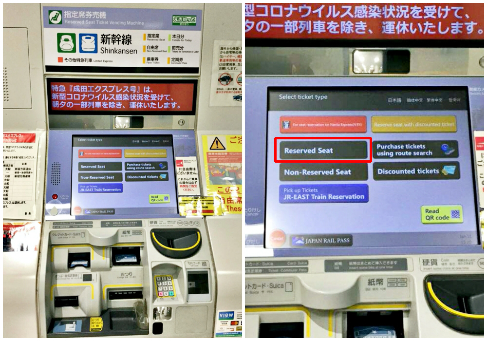 ด้วยตั๋วรถไฟที่เครื่องอ่านได้ ให้ใส่ลงในเครื่องจำหน่ายตั๋วแบบระบุที่นั่ง ช่วยให้ลูกค้าสามารถจองที่นั่งสำหรับรถไฟชินคันเซ็นและรถไฟด่วนพิเศษในพื้นที่ที่ครอบคลุมด้วยบัตรโดยสารที่ถูกต้อง