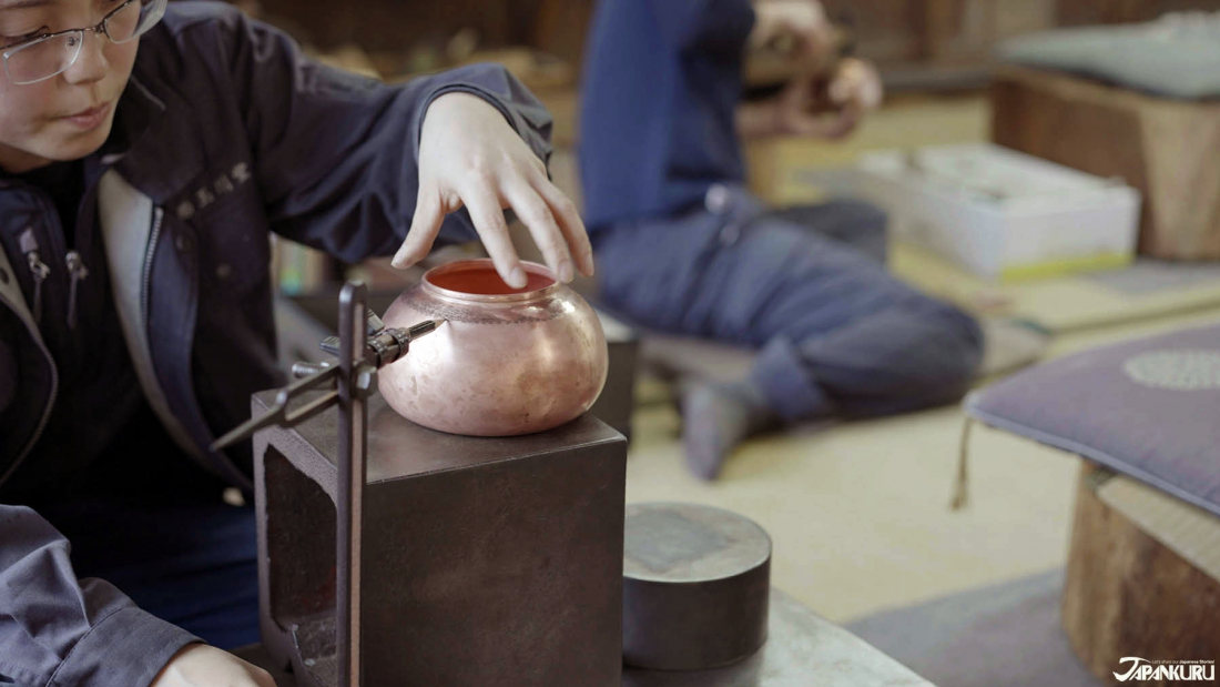Today, visitors will find Gyokusendo based out of a traditional Japanese building, with a small workshop where artisans spend the day gently tap-tap-tapping away at sheets of copper. Slowly but surely, the flat pieces of metal are rounded and sculpted using hammers, as the workers form elegant shapes and curved spouts seemingly out of nowhere.