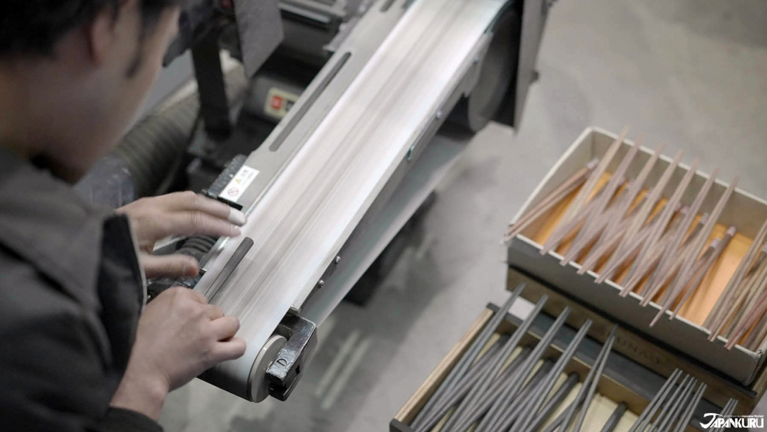 Peeking into the workroom, you can see artisans using high-density wood (like ebony, rosewood, or even “snakewood” from Suriname) and engineered marble, and carefully shaping the rough chunks of material into aesthetically pleasing chopstick shapes, with elegantly pointed tips as thin as 1.5 mm (1/16″).