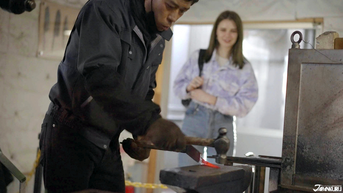 After looking in on one of the large modern factory rooms, where industrial machines help the workers stamp out knives and sharpen the blades, you can also visit Tojiro’s smaller workshop where handcrafted knives are still slowly hammered into shape, heated, and hammered some more.