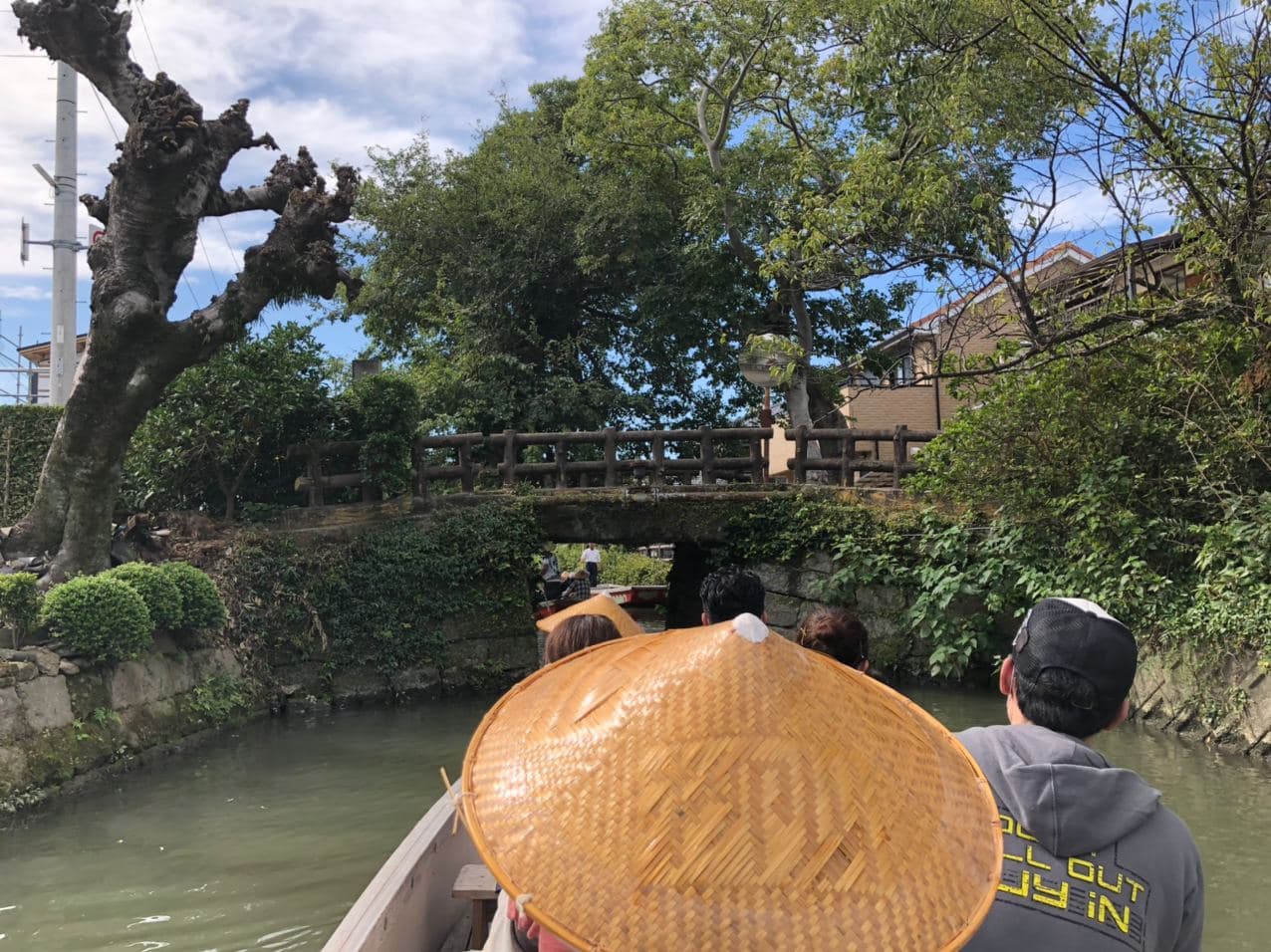 Yanagawa’s canals are a mere 450m across at their widest—there are even sections where they are barely wide enough for the boat—and circle the grounds of where Yanagawa Castle used to stand. Each boat holds about 10 people and is manned by a single boatman, who takes on the herculean task of guiding the entire boat through the entire route.